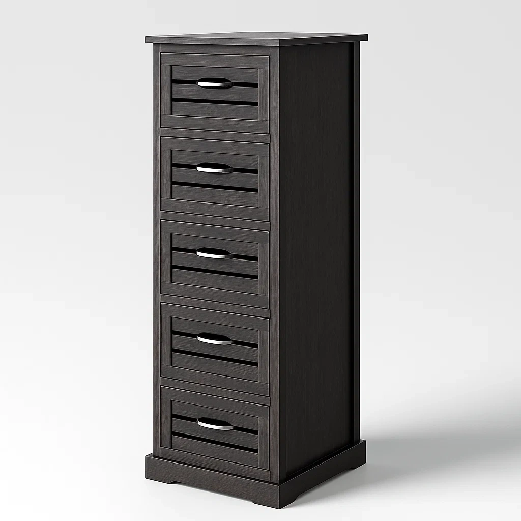Cassettiera in legno con 5 cassetti marrone scuro