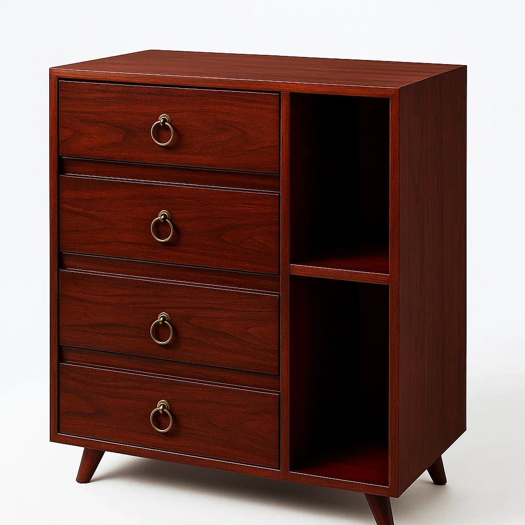 Cassettiera in legno massello con scaffale, 4 cassetti, 60x40x80 cm