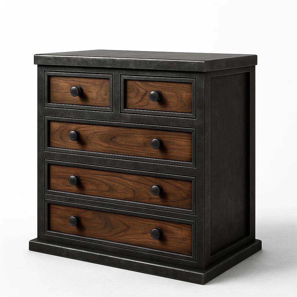 Cassettiera in legno e metallo con 5 cassetti antracite