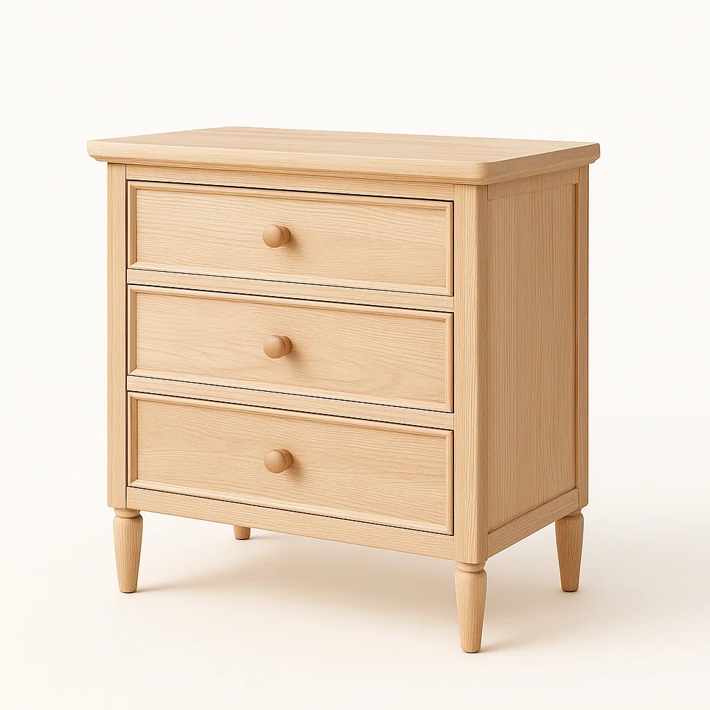 Cassettiera in legno con 3 cassetti in legno chiaro