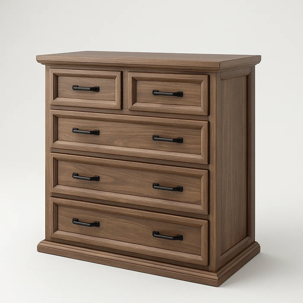 Cassettiera in legno massello con 5 cassetti e maniglie in metallo marrone 90x110x45 cm