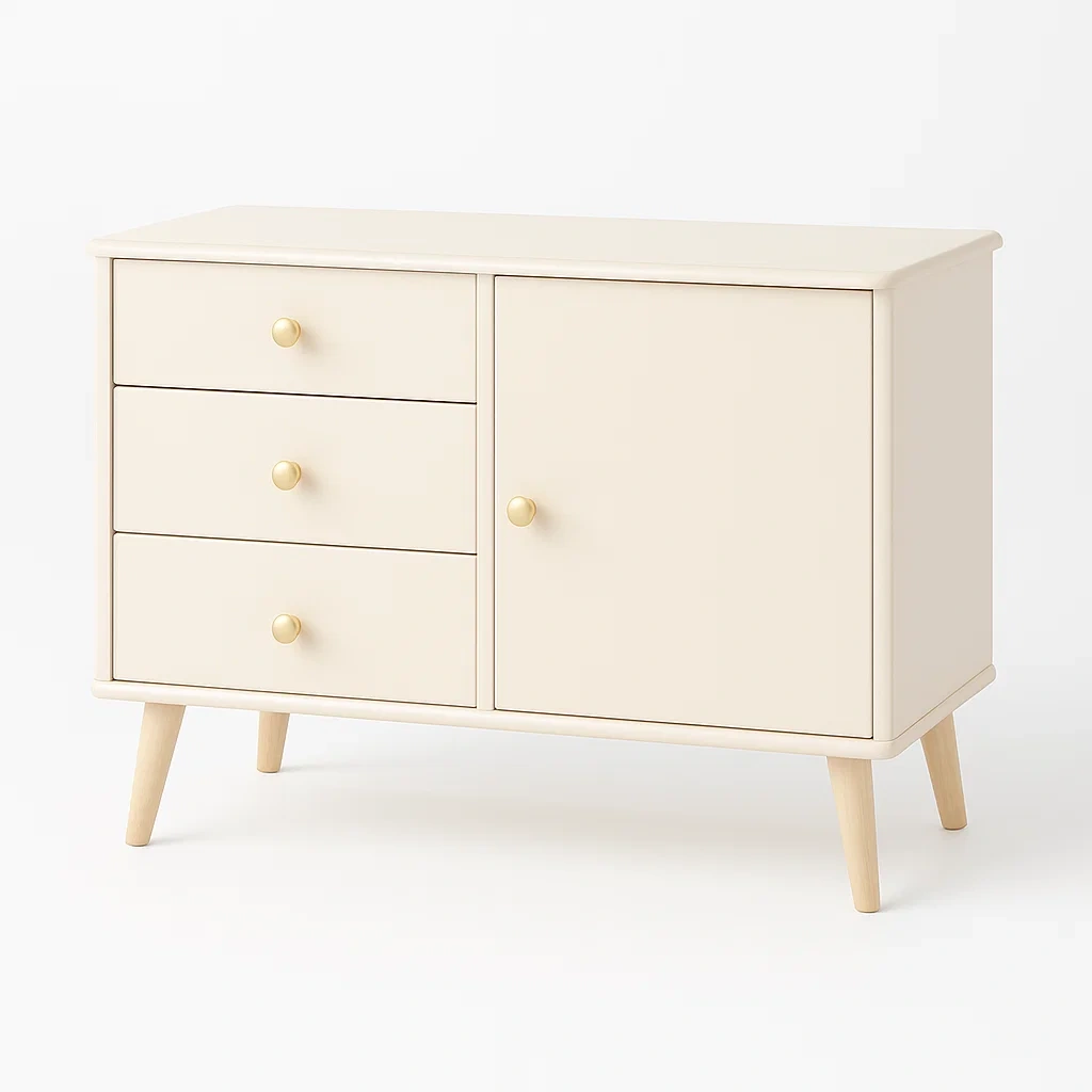Credenza con cassetti e anta in legno mdf rovere chiaro