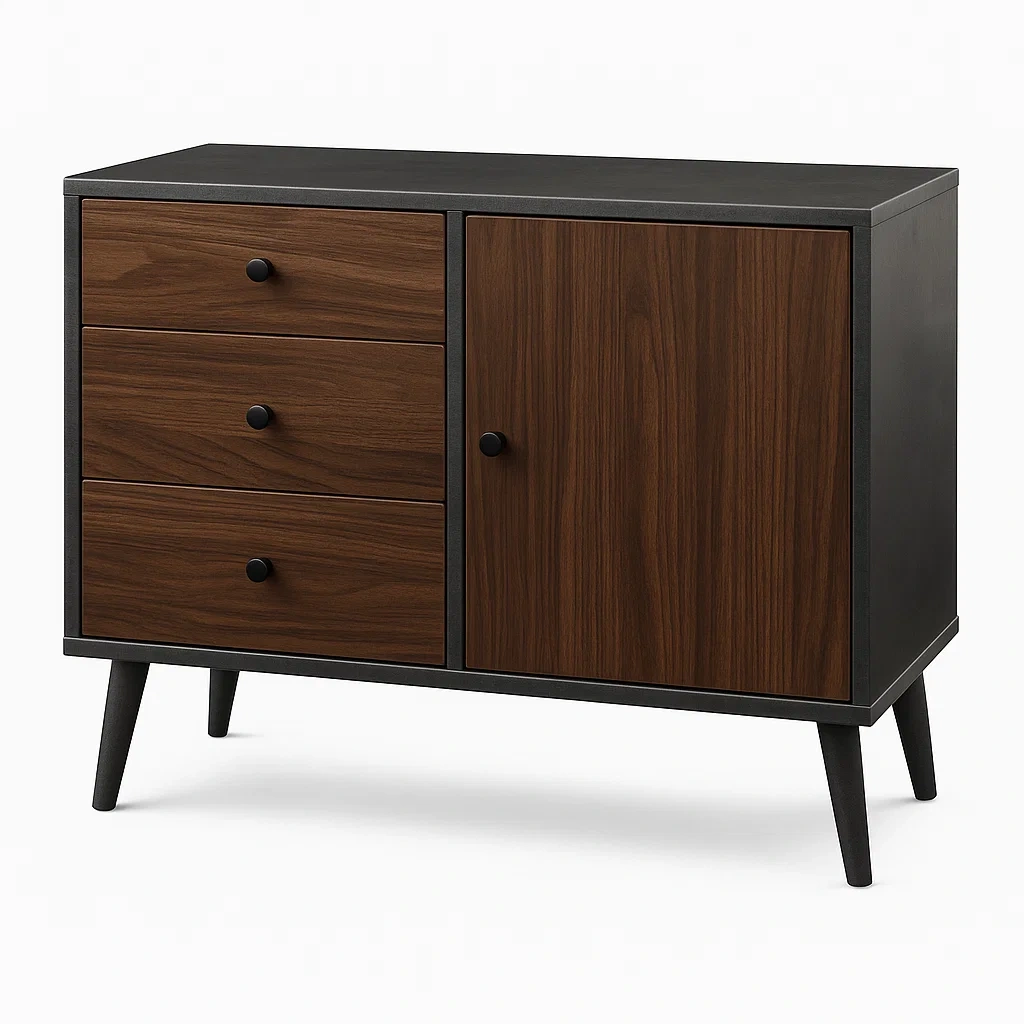 Credenza moderna in mdf e acciaio con 3 cassetti e 1 anta marrone/nero