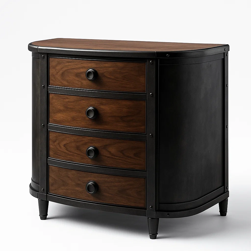 Cassettiera curva in legno massello con struttura in metallo 80x40x75 cm