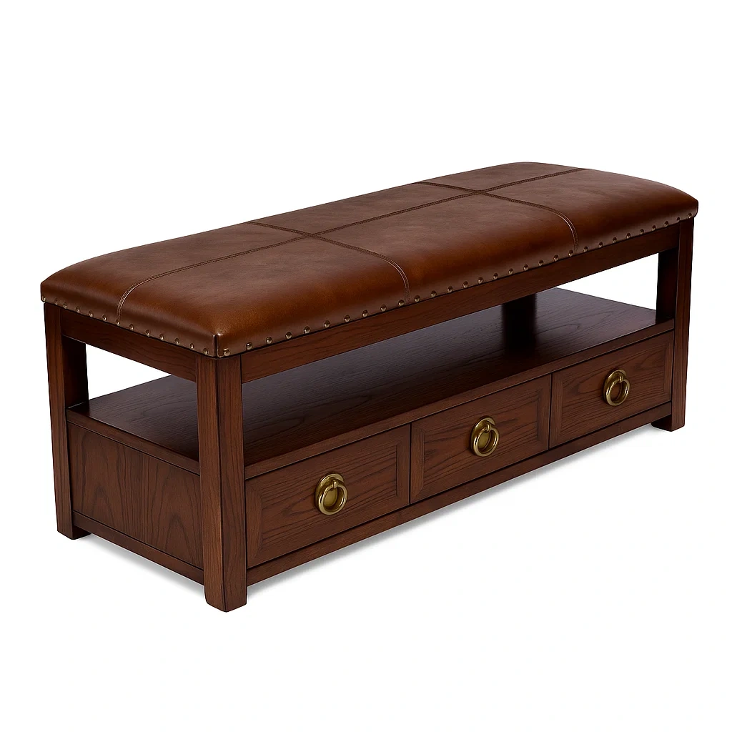 Sotto la seduta si trovano tre cassetti di legno per ulteriore spazio di archiviazione.
