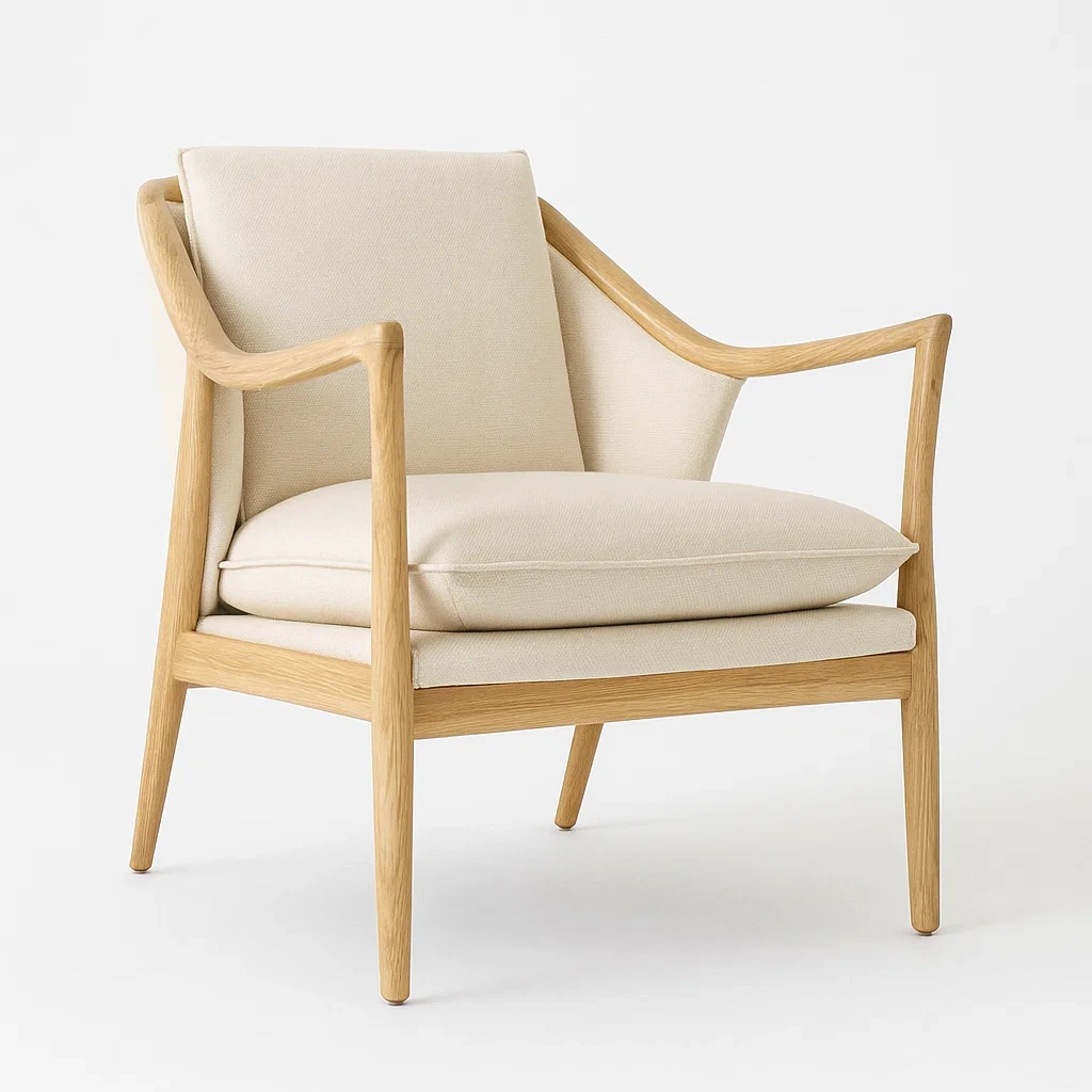 Materiale: Struttura in legno di rovere, Rivestimento in tessuto di cotone. Cuscini imbottiti in schiuma poliuretanica.