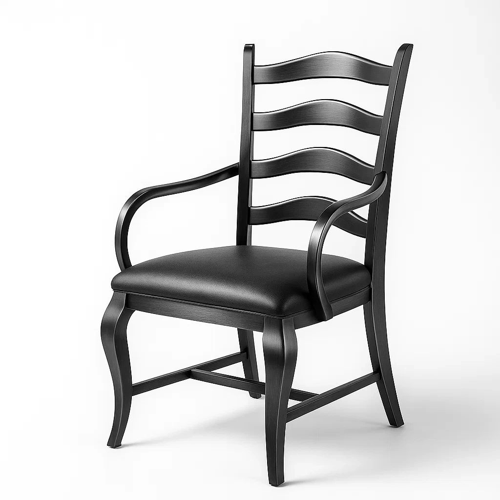 Sedia da pranzo in legno con braccioli e seduta in similpelle nera