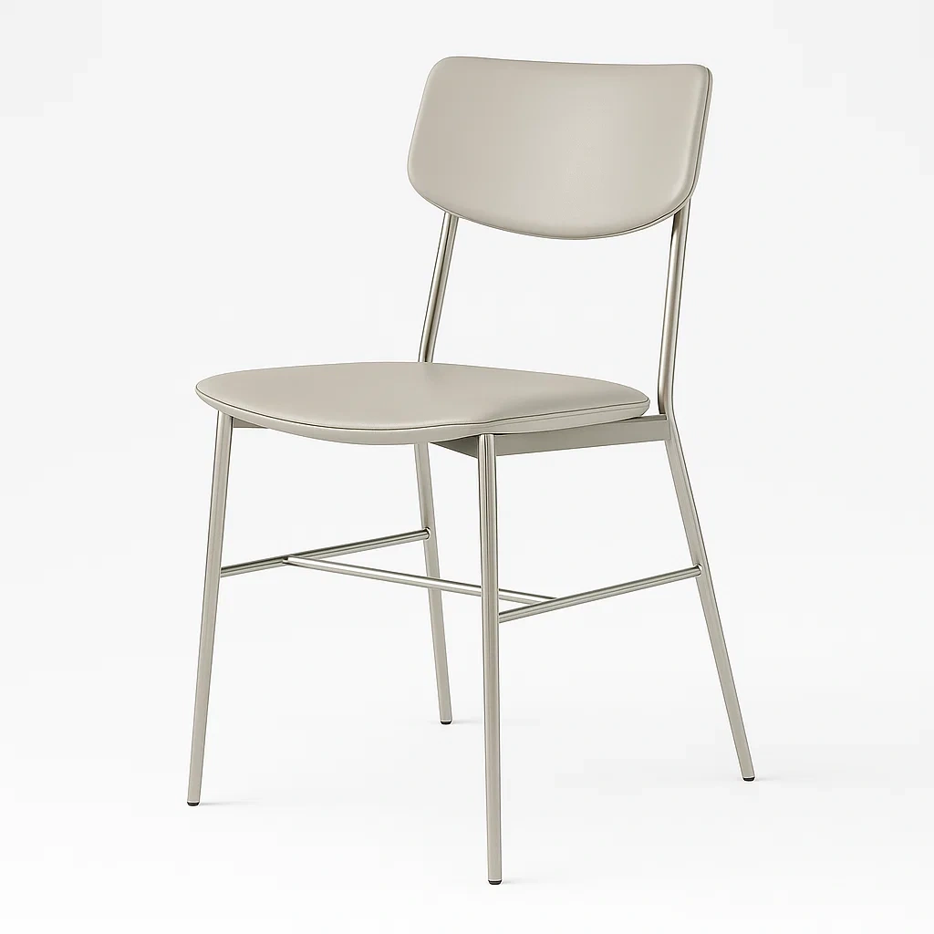 Questa sedia presenta una seduta in poliuretano (PU) e una struttura in metallo.
