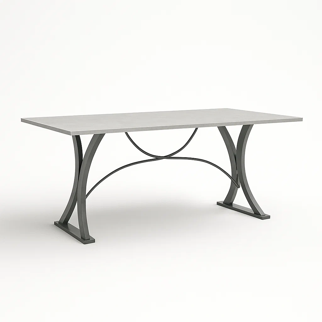 Tavolo da pranzo rettangolare in cemento e acciaio 200x100x75 cm